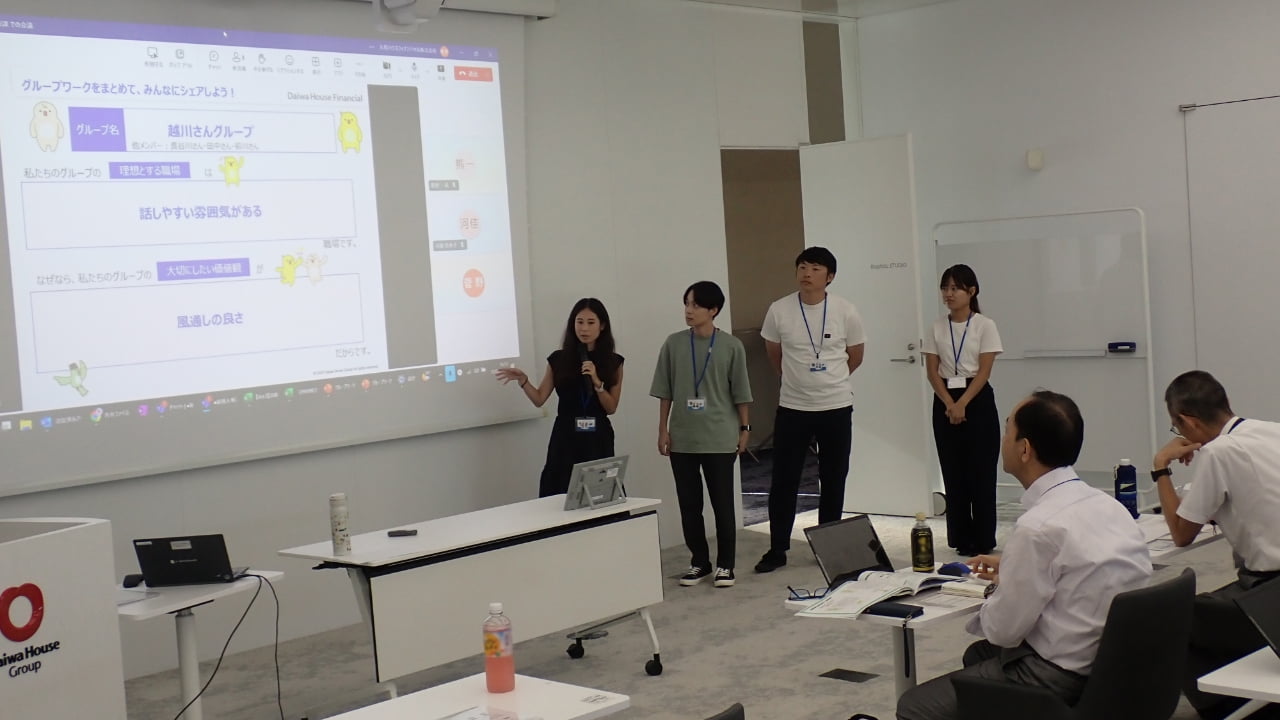 グループの保有施設「コトクリエ」でグループワークを実施。ワーク・ライフ・バランスについて話し合うことで新たな気づきが生まれます。