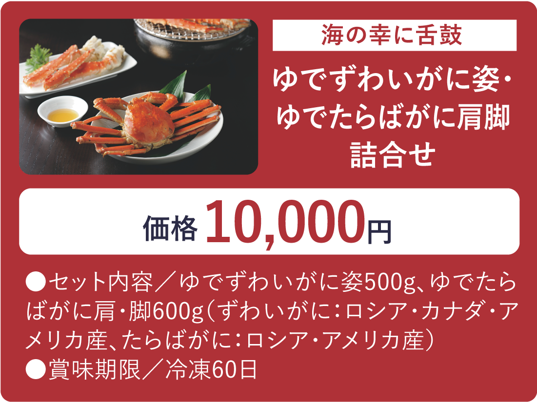 ●セット内容/ゆでずわいがに姿500g、ゆでたらばがに肩・脚600g(ずわいがに:ロシア・カナダ・アメリカ産、たらばがに:ロシア・アメリカ産)